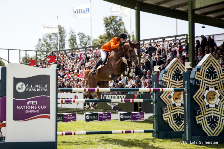 En remportant cet après-mdi la coupe des nations à Falsterbo , les cavaliers hollandais marquent de précieux points en vue de la qualification de leur pays pour la finale à Barcelone.