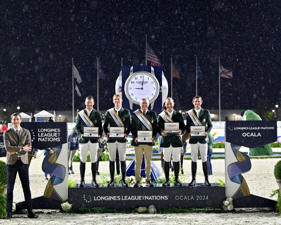 Au terme d’une seconde manche des plus surprenantes au niveau des scores, l’équipe irlandaise composée de Darragh Khenny , Dany Coyle, Cian O’Connor et Shane Sweetnam, réussit à s’imposer en bouclant l’épreuve sur un score total de 5pts. Grâce aux deux doubles sans faute de Steve Guerdat et Martin Fuchs et au bon final de Pius Schwizer, préféré à Janika Sprunger dans cette seconde manche (8pts au premier round avec Orelie), la Suisse brille encore au podium d’Ocala.