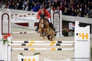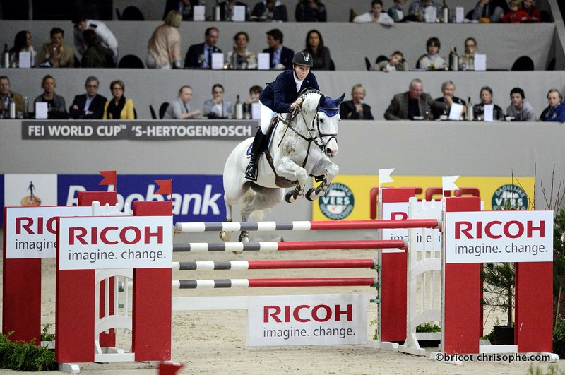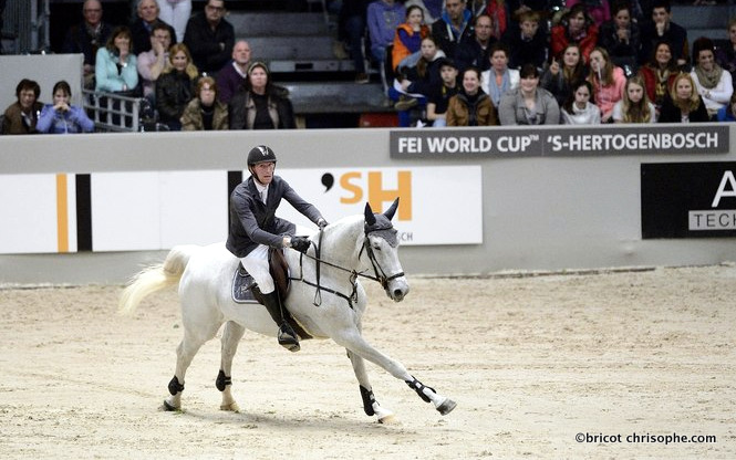 En selle sur le gris étalon Colorit, le jeune allemand David Will remporte cette dernière étape de la coupe du monde à S’hertogenbosch .