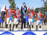 “Nina a été exceptionnelle. Elle a gagné ce Grand Prix avec un barrage formidable en donnant une impression de grande facilité et une fin de tour très rapide. Elle tournait autour de cette victoire avec Dynastie, à Aix-la-Chapelle son barrage était très bon mais avec une faute, qu’elle a corrigée aujourd’hui. L’entrée de combinaison était délicate, elle a donc ajouté une foulée, l’expérience d’Aix lui a servi. Lorsque Dynastie et Nina sont comme cela, c’est très difficile de les battre.